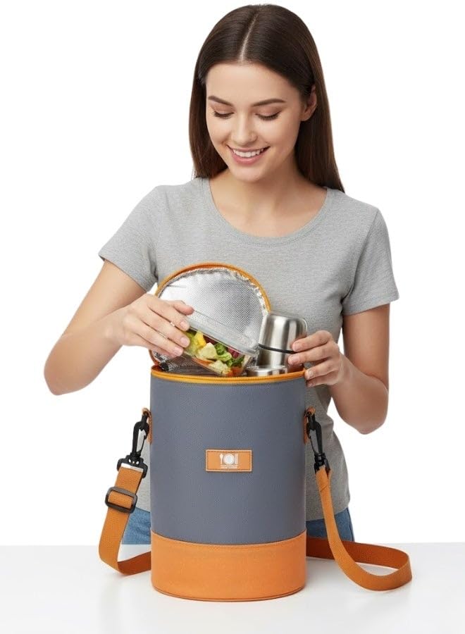Generic - Happy Home Japanese Insulated Waterproof Cooler Bag Large Capacity Lunch Bag Practical Design for Keeping Food and Drinks Hot and Cold at Work, School, Camping and Travel-Grey/Orange