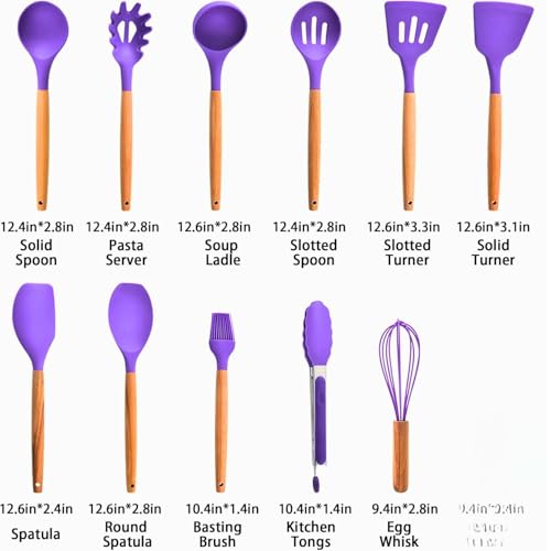- 【12 HIGH-END KITCHENWARE SETS】: Including solid spoon,slotted spoon,soup ladle,pasta server,whisk,round spatula,spatula,solid turner,slotted turner,basting rush,tongs,holde, 12 pieces of professional silicone kitchenware sets to meet your various kitchen needs