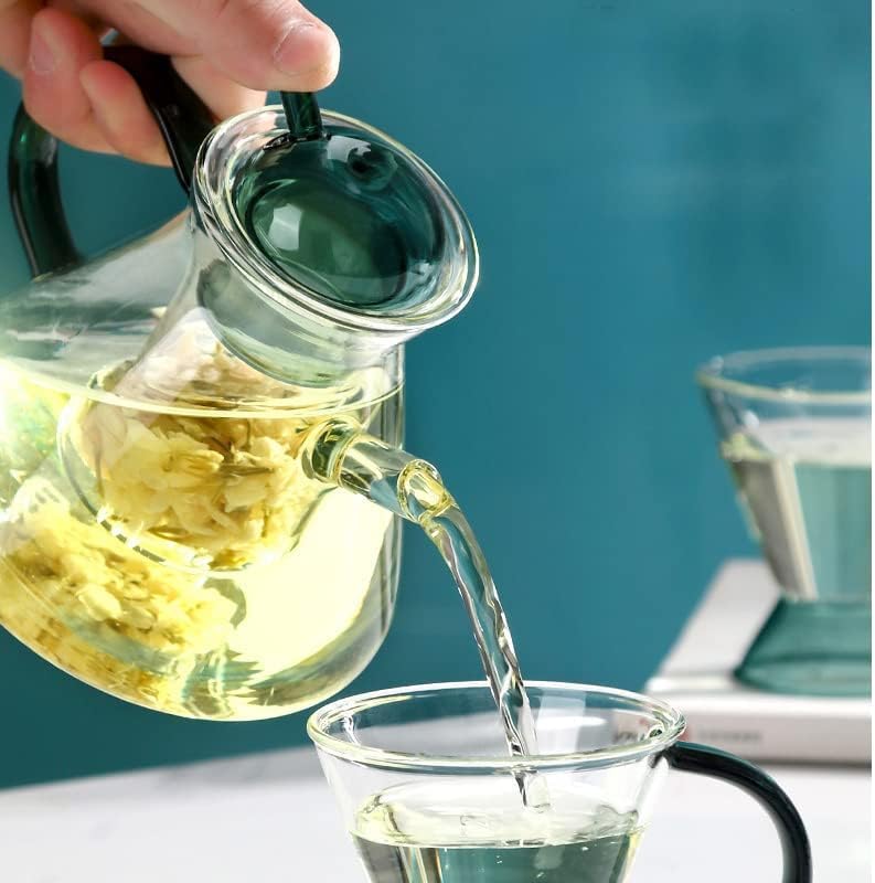 Generic - HAPPY HOME New Simple Design Heat Resistant Glass Teapot, Flower Shaped Teapot, Thick High Heat Resistant Luxury Coffee Pot Set, Flower Shaped Tea Filter Pot, Romantic Afternoon Tea Set for Home Use (