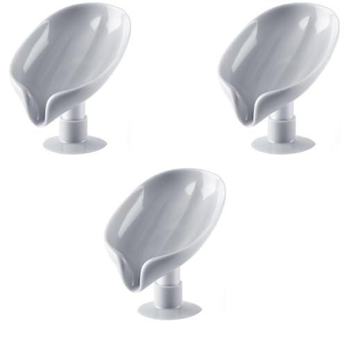 Generic - Happy Home Soap Dish Holder, Leaf Shape, Self Draining, ABS Plastic (3, Grey)