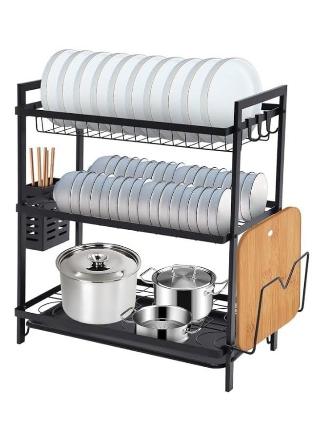 generic - Happy Home Stainless Steel 3-Tier Dish Drying Rack with Side Holders and Hooks for Forks, Knives and Cutting Boards50X8X25Cm - Black