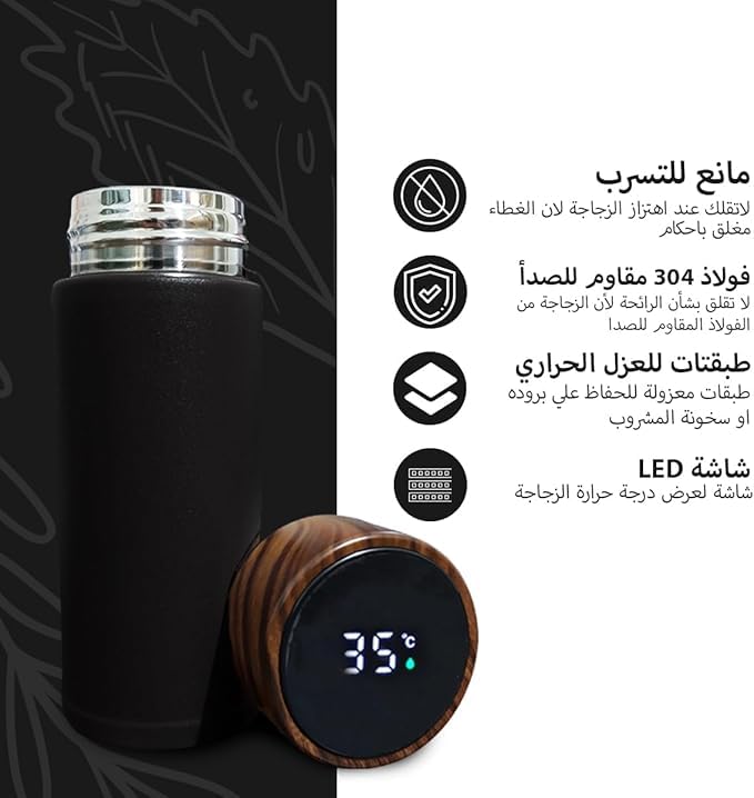 Happy Home - Happy Home Vacuum Insulated Digital Thermos Flask - Thermal Mug Coffee Container - Portable Travel Water Bottle Cup - 304 Stainless Steel for Tea & Coffee - 220ML (Black)