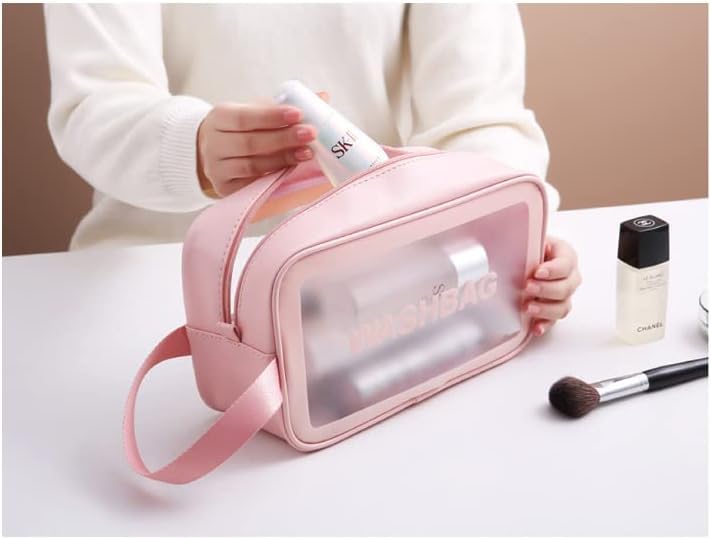 Generic - Happy Home Women Zipper Makeup Beauty Bags Transparent Make Up Organizer Storage Bath Toiletry Wash Bag Waterproof Cosmetic Bag, PU PVC Cosmetic Makeup Pouch for Women,Girl 25 Cm X 15 Cm (Pink)