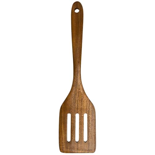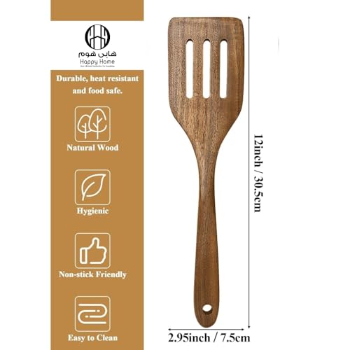 Happy Home - ملعقة سباتولا خشبية للطبخ من هابي هوم، معلقة مخرمة لتقليب الطعام، أدوات طهي لأواني الطهي غير اللاصقة، ملعقة مطبخ للسمك والبيض والفطائر، 30.5 سم