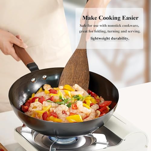 - لمسة نهائية ناعمة - تتميز حواف الملعقة السباتولا الخشبية بسطح ناعم ومريح الملمس. أدوات تناول طعام خشبية مثالية لقلي الخضروات أو تقليب البيض أو صنع العجة أو مزج الأطعمة المقلية.