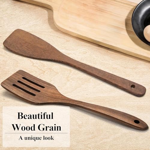 - معالق سباتولا خشب للطبخ - تتضمن مجموعة أدوات الطبخ الخشبية ملعقة سباتولا مشقوقة وملعقة لتقليب الطعام. تتميز كل ملعقة خشبية بطول 31 سم وسمك 4 ملم. مناسبة بشكل رائع للاستخدام مع الحلل غير اللاصقة.