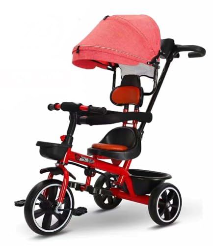 Generic - HAPPY KIDDO 4 in 1 Convertible Baby Tricycle, Kid's Trike Ride On with Parental Adjust Push Handle, Children Tricycle with Canopy, Bicycle for Kids, Suitable for Boys & Girls (Red)