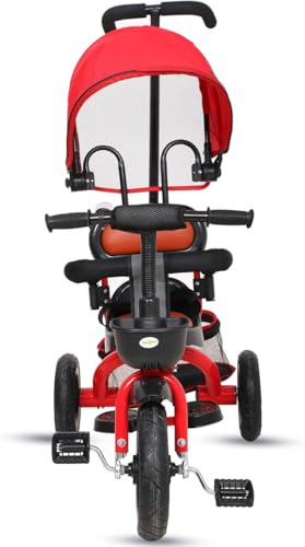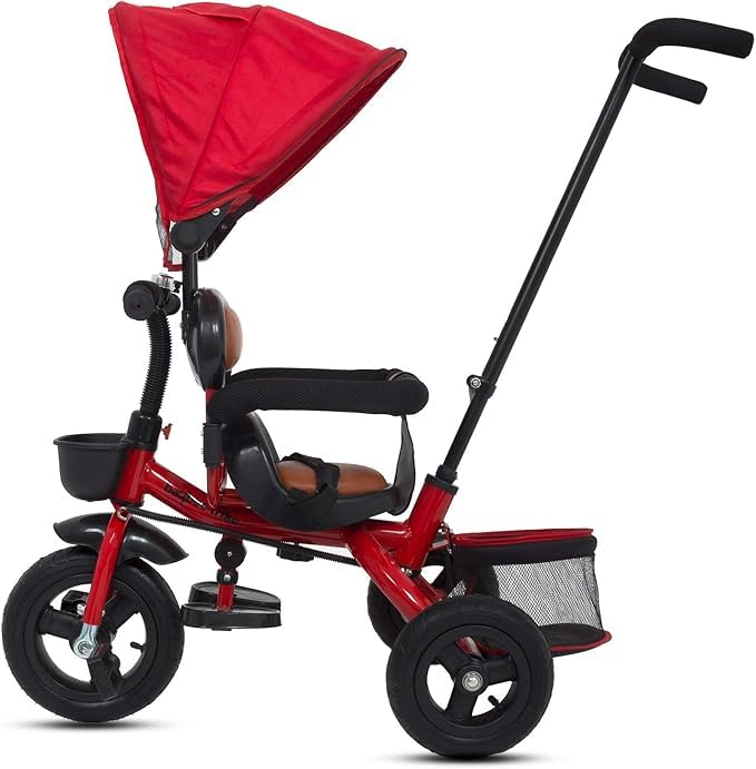 - <br>Stylish push bar with directional control: child does not need to pedal. They simply enjoy the fun and independence. While you guide them with the parent push handle which is removable & adjustable, trike adjusts as child grows, for babies from 12 months and up to 36 months and 180 degree seat rotating system, adult steer & stroll adjustable push handle. Front wheel coasts while adult pushes. It can support upto 25 kgs of weight which makes it stable and secure<br>