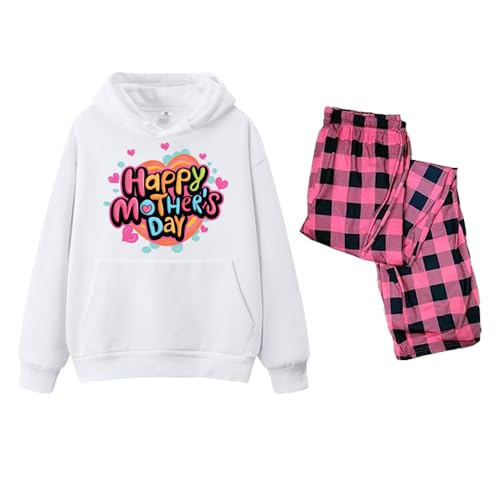 Generic - Happy Mother's Day Hoodie and Pajama Pants Set, White Sweatshirt with Pink 2-Piece SIZE (L)