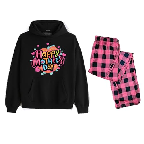 Generic - Happy Mother's Day Hoodie Black and Pink Plaid Pajama Set, 2 Piece SIZE (S)