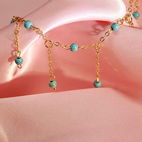 Happyyami - Happyyami Boho Turtle Anklet Bracelet Adjustable Turquoise Anklet Bracelet Beads Charms Pendent Beach Party Favors Gifts Gold
