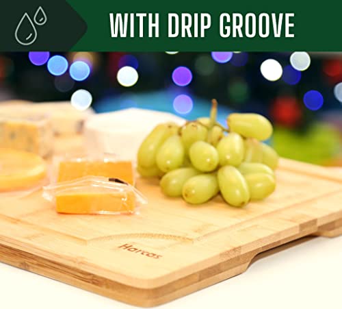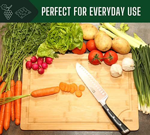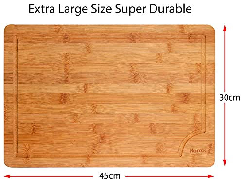 Harcas - Premium Organic Bamboo Wooden Chopping Board . Extra Large Size Cutting Board 45cm x 30cm x 2cm. Best for Meat, Vegetables, Tapas and Cheese. Professional Grade for Durability. Drip Groove
