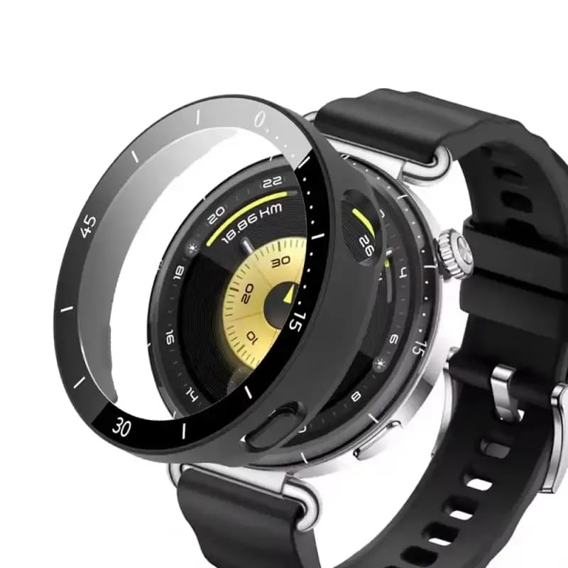 ELMO3EZZ - Hard Case Compatible with Huawei Watch GT6 41mm with Screen Protector, 9H Hardness Hart PC Slim Tempered Glass Case for Smart with Scale Indicator (Black)