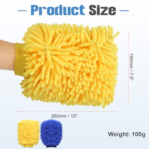 - المقاس - مقاس قفازات غسيل السيارات: 260 ملم × 190 ملم / 10 انش × 7.5 انش، الوزن: 100 غرام. تم تصميم قفازات غسيل السيارات لتناسب أي نوع من أنواع اليد، والأساور المطاطية تثبت القفازات بإحكام على يديك وليس من السهل سقوطها.