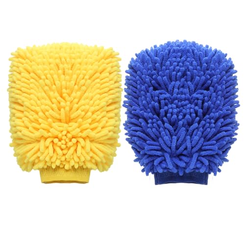 HARFINGTON - قفازات غسيل السيارات المصنوعة من المايكروفايبر والشانيل من هارفينجتون مقاس 10 انش × 7.5 انش، قفازات غسيل خالية من الخدوش، قفازات ماصة مزدوجة الجوانب، قفازات تجفيف لغسيل السيارات وتنظيف المنزل، ازرق