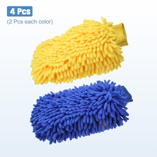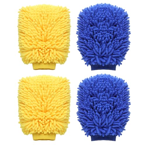 HARFINGTON - قفازات غسيل السيارات المصنوعة من المايكروفايبر والشانيل من هارفينجتون من 4 قطع، 9 انش × 5.5 انش، قفازات غسيل خالية من الخدوش، قفازات ماصة مزدوجة الجوانب، قفازات تجفيف لغسيل السيارات وتنظيف المنزل