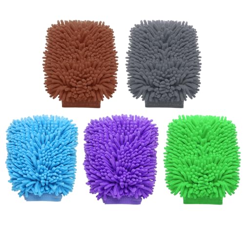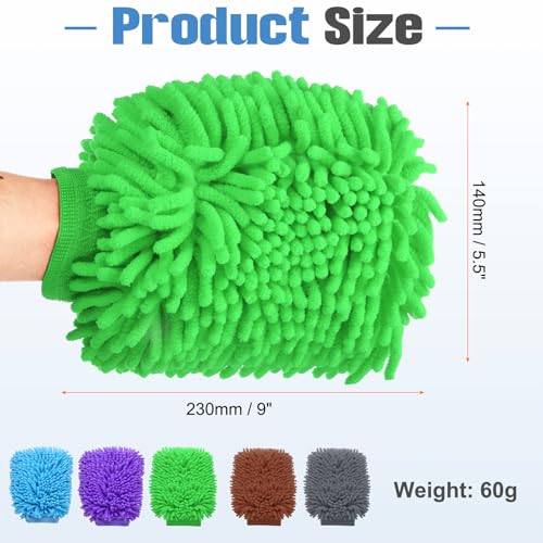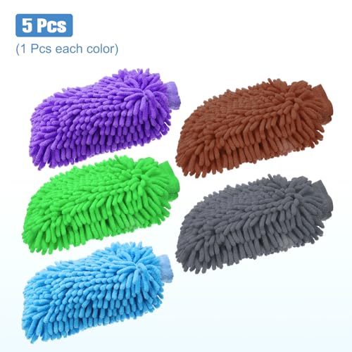 HARFINGTON - HARFINGTON 5pcs Chenille Microfiber Car Wash Mitts 9" x 5.5" Scratch Free Wash Gloves Absorbent Double Sided Plush Cleaning Drying Mitts for Car Washing Home Clean 5 Colors Mitt