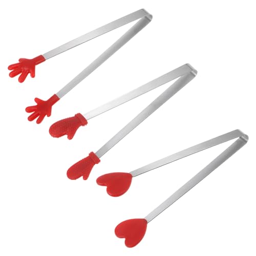 HARFINGTON - HARFINGTON Mini Food Tongs 5.5" Pattern Shape Stainless Steel with Silicon Tips Small Cooking Tongs Kitchen Food Tongs Serving Tongs for Cooking Grilling BBQ Barbecue Kitchen, Red