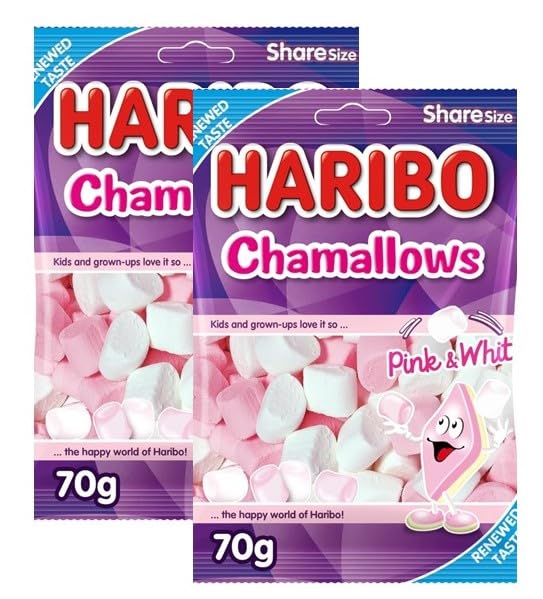 HARIBO - Haribo Chamallows Pink & White Marshmallows, 70g, Pack of 2