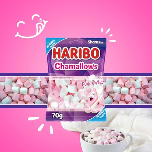 - Chamallows Pink & White Soft and fluffy, HARIBO Chamallows Pink & White have a unique texture that melts in the mouth for a delicious taste. Perfect for barbecue toast, chocolate fondue, and Chamallow lollipop creations