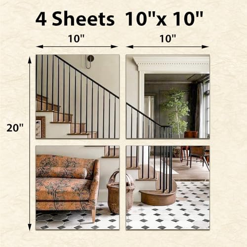 HARRITPURE - HARRITPURE Acrylic Gym Mirrors, 10'' x 10'' Glass Mirror Tiles (4PCS), Square Large Wall Mirror for Home Gym, Bedroom, Door,Bathroom, Frameless Mirror Sets