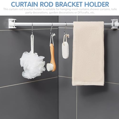 HASTHIP - HASTHIP® 6Pcs Round Hook Rotating Curtain Rod Bracket, Wall Mounted Rod Holder for Towel Bar Wardrobe Rod, Self Adhesive Rod Hanger for Shower Curtain Rod, Tier Curtains Rod, Tier Drape Rod
