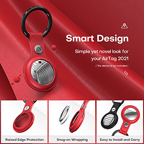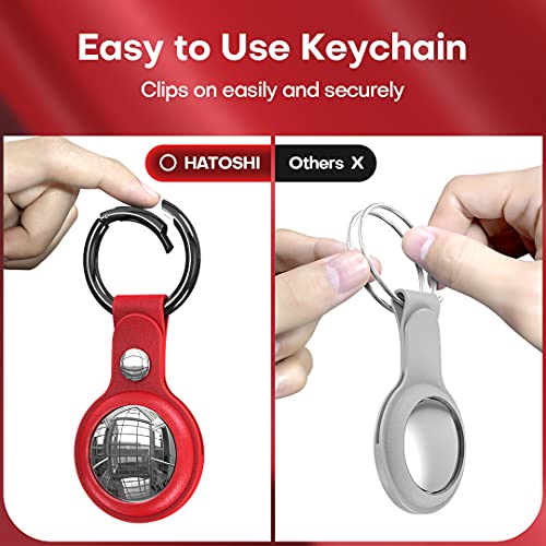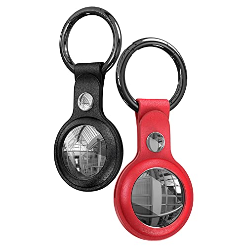 HATOSHI - HATOSHI 2 Pack Leather Case for AirTag (2021), Easy Carry Shockproof Protective AirTag Cover Holder with Key-Chain for AirTag Tracker for Your Key Bag Wallet Dog Cat, Black & Red
