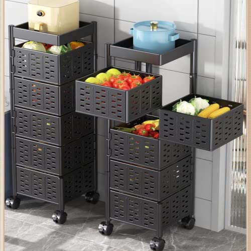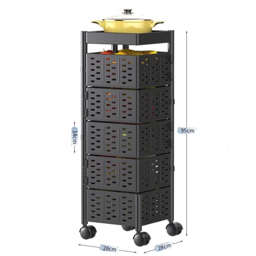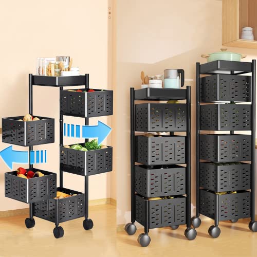 HaTur - حامل فواكه وخضروات دوار 360 درجة من هاتور، حامل متنقل للمطبخ لتخزين الفواكه والخضروات، حامل تخزين مربع للمطبخ مع عجلات (5 طبقات)