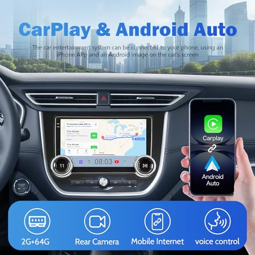 - Upgrade your driving experience with this double din car stereo featuring wireless Apple CarPlay and Android Auto for seamless smartphone integration. Enjoy hands-free calls, music streaming, and GPS navigation with the built-in 2+64GB system.