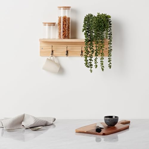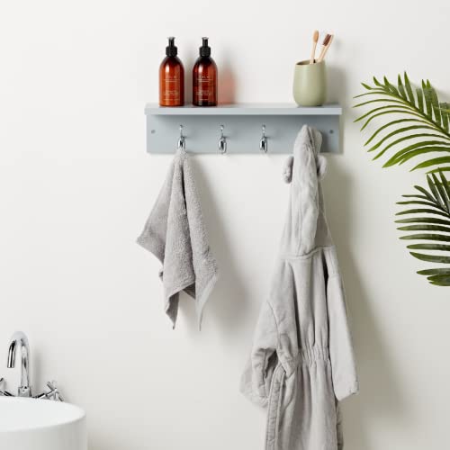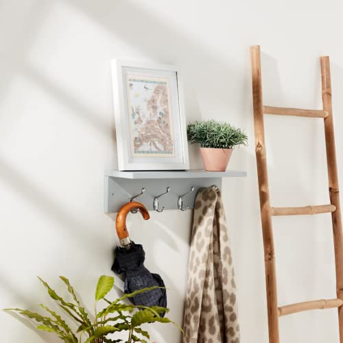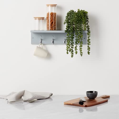Haus Projekt - Haus Projekt 4-Peg Wall Hook Shelf, Modern Grey Metal, 11.5 x 45 cm, Wall Mounted Coat Rack, Storage Hooks for Hanging Coats, Towels, Kitchen Storage