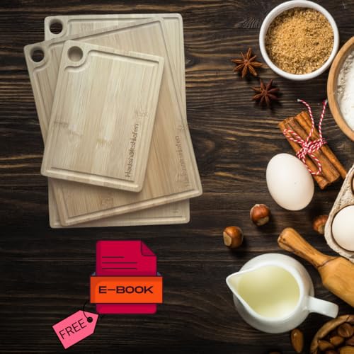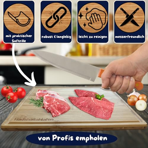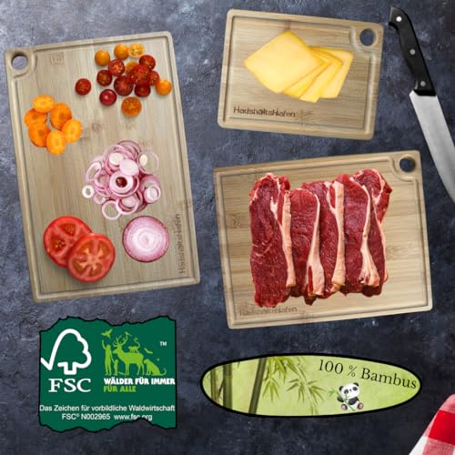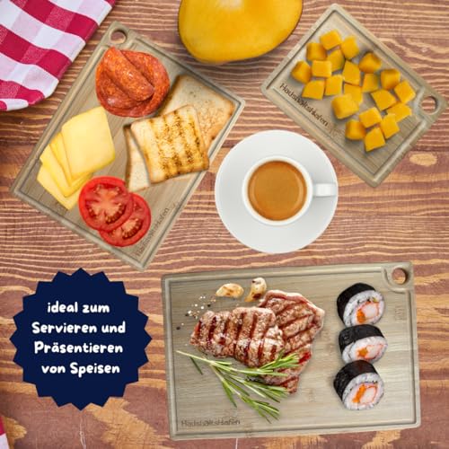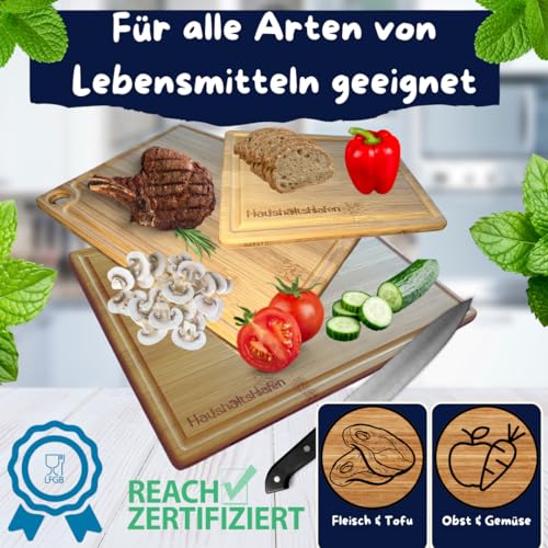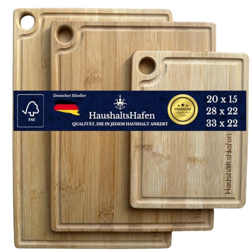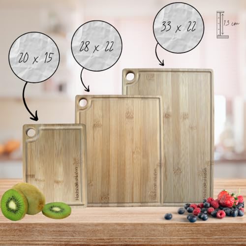 HaushaltsHafen QUALITÄT, DIE IN JEDEM HAUSHALT ANKERT! - HaushaltsHafen Wooden Chopping Board (Set of 3) - 3 Bamboo Chopping Boards with Juice Groove - 33 x 22 cm / 28 x 22 cm / 20 x 15 cm - The Professional Wooden Board Kitchen, Bread Boards and Serving