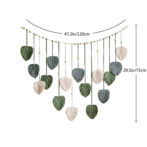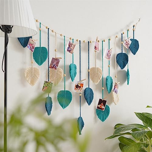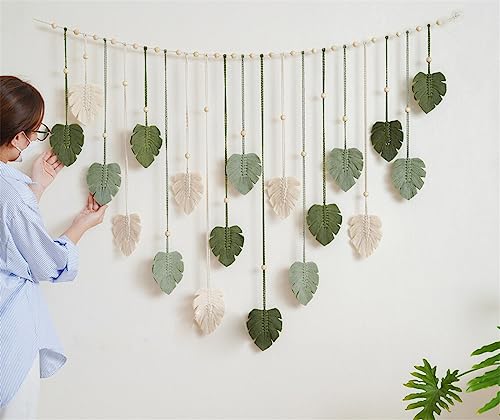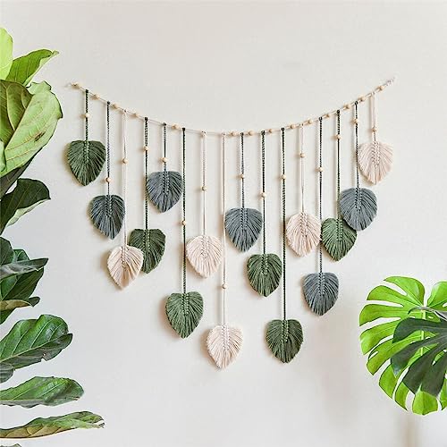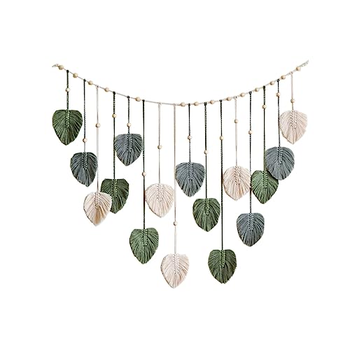 Hava Kolari - Hava Kolari Macrame Wall Hanging Leaves, Wall Decon Tapestry with 10 Pieces Wooden Clips, Handwoven Boho Wall Decoration for Living Room, Bedroom, Indoor, (Green)