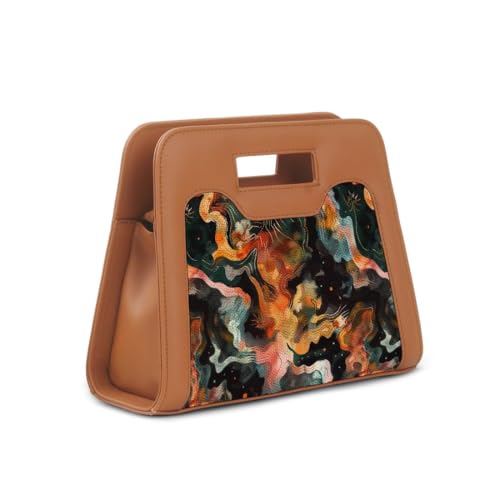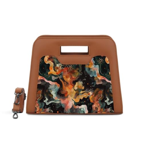 Generic - Havana Chic Peek Handbag, Abstract Art Pattern, Brown Leather Trim, Multicolour Canvas