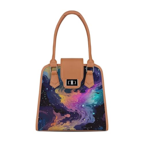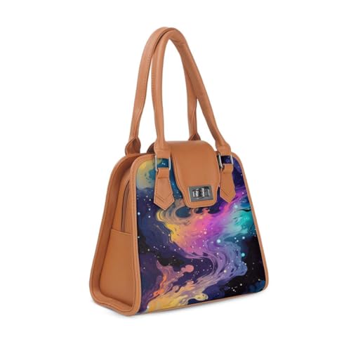 Generic - حقيبة هافانا ميتروبوليتان تشارم، طباعة حديقة المجرة، حافة جلدية بنية اللون، حقيبة يد منظمة