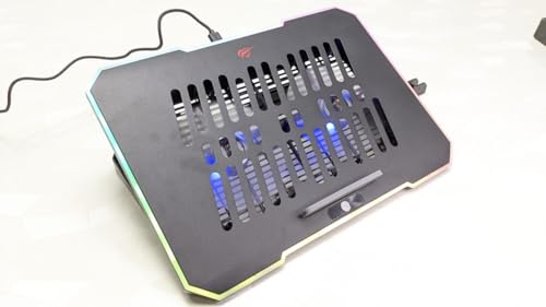- Havit HV-F2069 cooling stand Take care of the effective cooling of your laptop. The Havit stand has 4 fans, which are distinguished by their quiet operation. You can also adjust their speed. You can connect it to the device of your choice via two USB ports. The HV-F2069 also contributes to the comfort of use – you can easily adjust its height to your needs. The stand has a blue LED backlight and is finished with a metal mesh. Fits laptops from 12-17″.