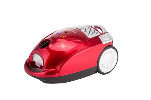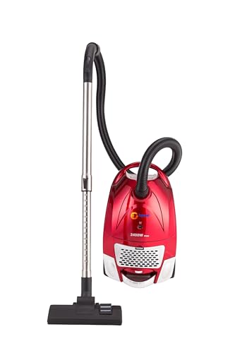 Hawaii - مكنسة كهربائية بدون كيس 2400 وات من هاواي بفلتر تنقية الهواء عالي الكفاءة وتحكم تدريجي في قوة الشفط وأنبوب ستانلس ستيل (أحمر)