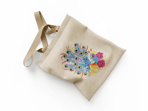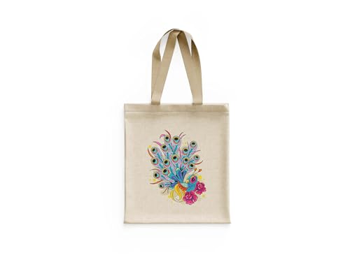 Generic - شنطة يد كبيرة توت نسائية قماشية مزودة بسوستة و 2 جيب كبير من هوية (تصميم الطاووس) بيج , اوف وايت - TB029