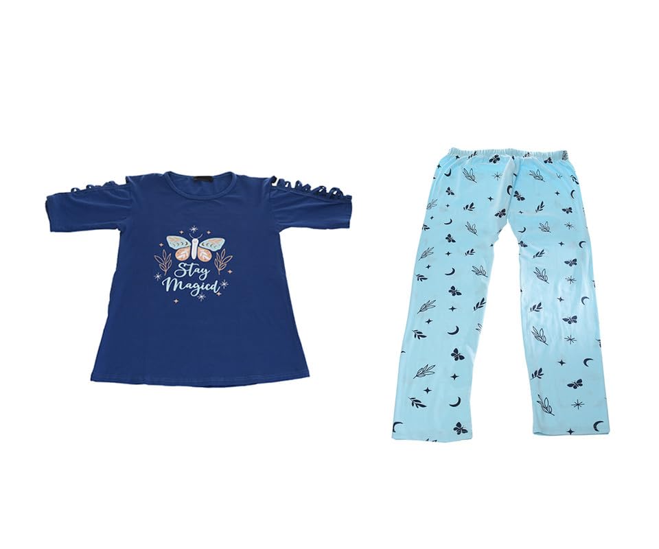 Hayat Kidswear - Hayat Boy's Trunk Summer Cotton T-Shirt and Pants - Size M - Navy/Babyblue