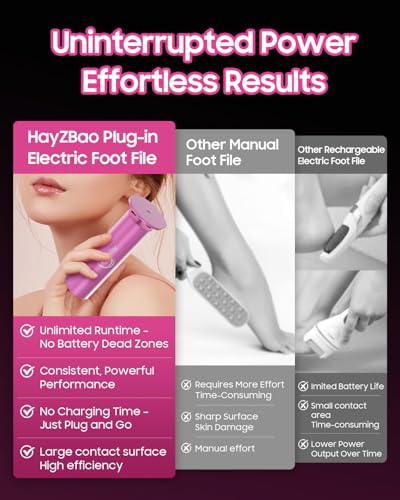 - No Batteries Required: Plug into an outlet for immediate use.No need to worry about battery life with our electric foot callus remover