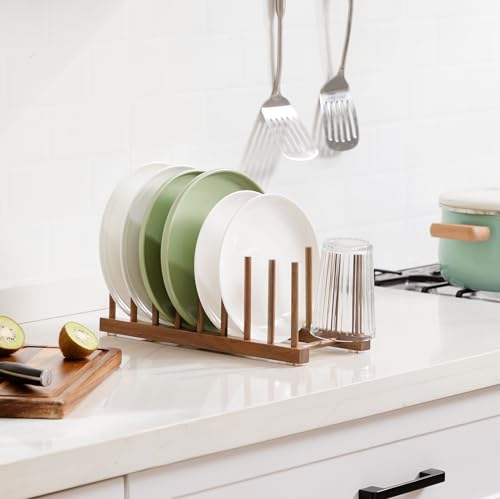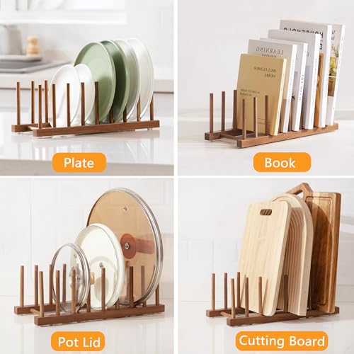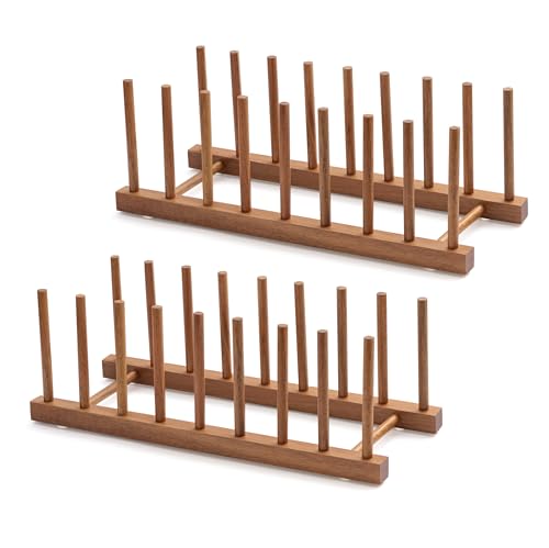 hblife - HBlife 2pcs Acacia Wooden Dish Dying Rack Pot Lid Plate Organizer Holder for Cabinet, Cutting Board Stand Drainer Storage Plate Rack for Dish, Pot Lid, Bowl, Cup, Cutting Board and Books