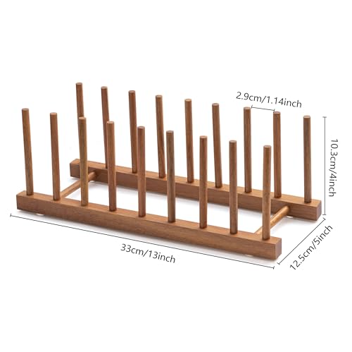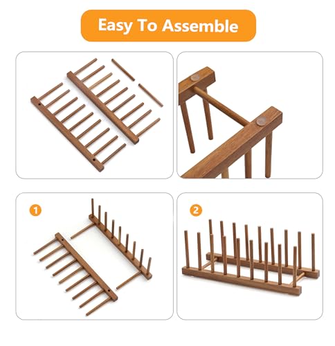 - Easy to install: 18 vertical pegs (9 on either side) create 8 slots for plates or pot lids., the two long racks and two pegs, each rack have two holes. To make sure it will connect each pieces more tighter, it is minus tolerance design. When install, push the pegs into side racks with a little big pressure, then the whole rack will be tight. Please check the size of the Wood Rack on my pictures before you purchase it.
