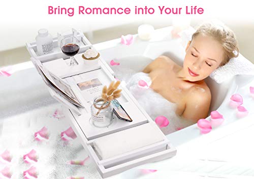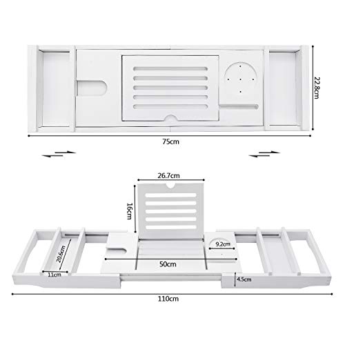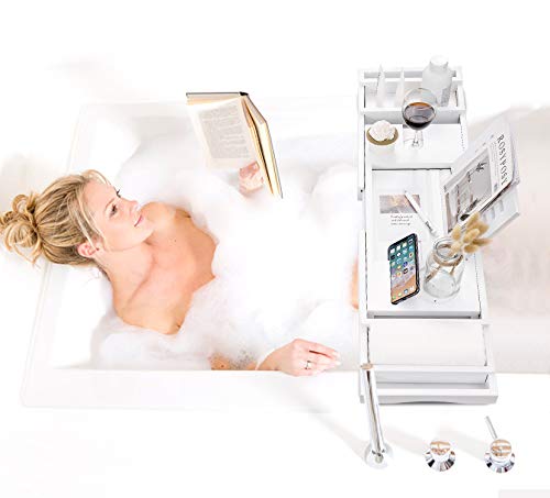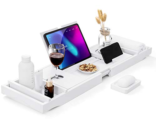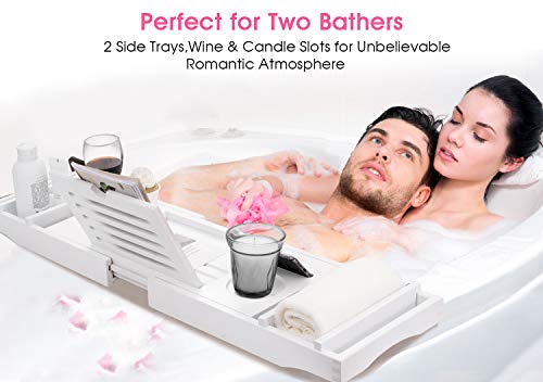 hblife - HBlife Bathtub Caddy Tray [Durable, Non-Slip], One or Two Person Bath and Bed Tray, Extending Sides Fits Any Tub, Cellphone iPad and Wineglass Holder, Free Soap Holder -White