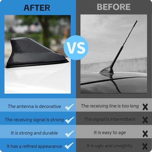 - 【Cool Decoration】: It has a streamlined shark fin shape that is very cool and stylish, so it is great to replace the original monotonous antenna. It can add beauty and sportiness to your car's exterior, enhance the grade of your vehicle, so that it is eye-catching and stands out.