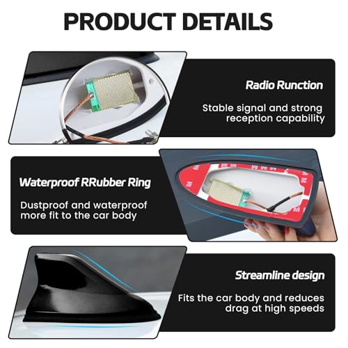 - 【Wide Application】: This shark fin shape antenna is universal, so it is widely applicable to the roof of most vehicles, including cars, SUVs, trucks, vans, etc. It is an ideal replacement for the original antenna. It is both beautiful and practical, making it a great gift for car owners.