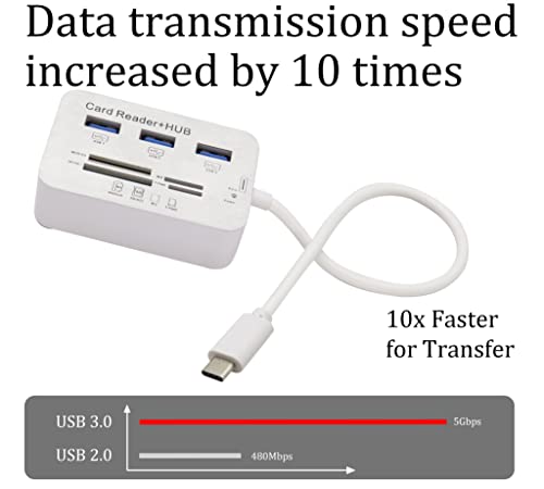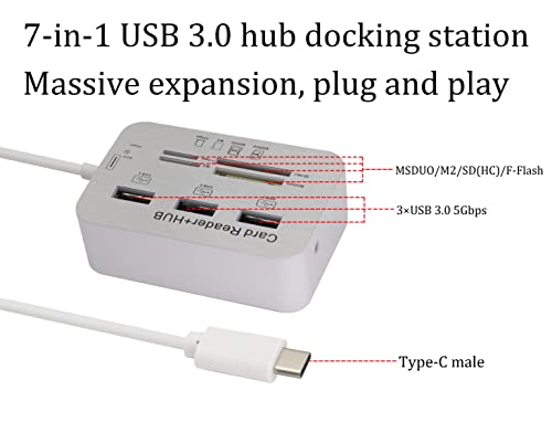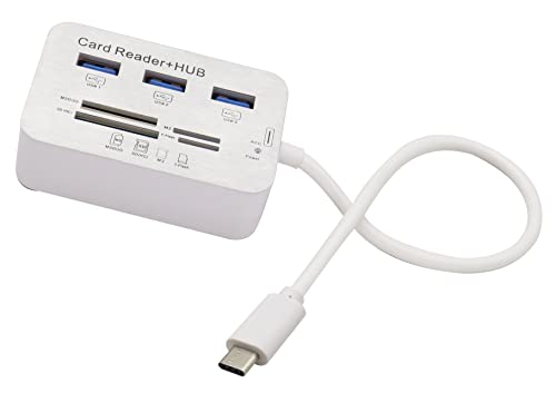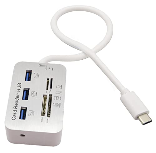 HCFeng - USB Type C 3.0/3.1 Card Reade Adapter Type-c to 3 Port USB 3.0 Hub with Card Reader MSDUO SD(HC) M2 TF(Flash) Multi-in-1 Memory Adapter Cable[0.3m/1ft](White/Type-c)