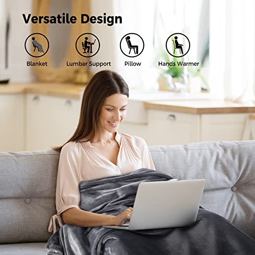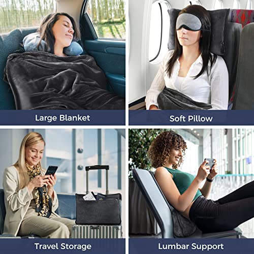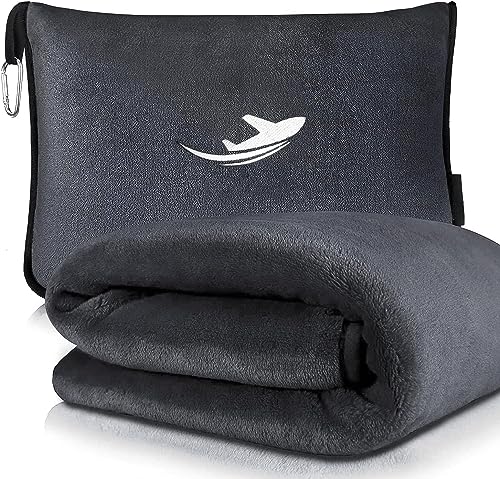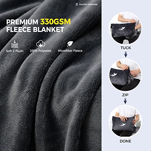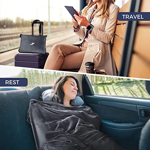 Hcosmy - Hcosmy Travel Blanket and Pillow - Premium Soft 2 in 1 Airplane Blanket with Soft Bag Pillowcase, Hand Luggage Sleeve and Backpack Clip (Gray)