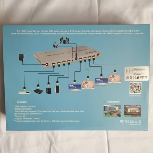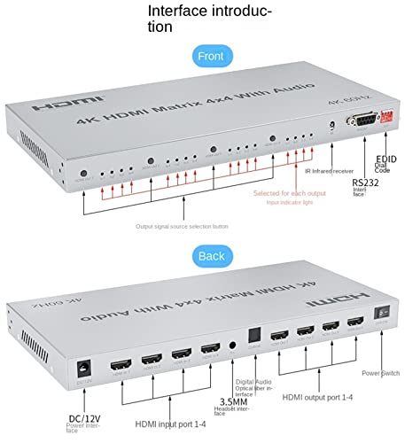 - Q:3.5+ Digital Optical Fiber, Audio Output: The matrix has 3.5mm digital fiber optic audio interface output, which can be connected to external audio equipment such as audio, headphones, power amplifier, mixer and other equipment.
