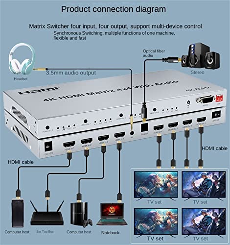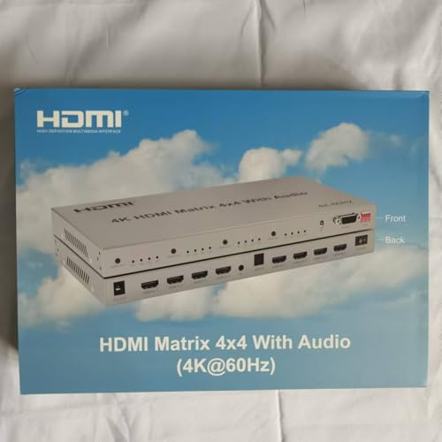 XYKJOBC - HDMI Matrix 4X4 with Audio, 4K @ 60Hz HDMI Matrix Switch 4x4 with Audio Extractor 4 in 4 Out HDMI 2.0 Matrix Switcher Splitter Selector HDR Support HDCP2.2 EDID