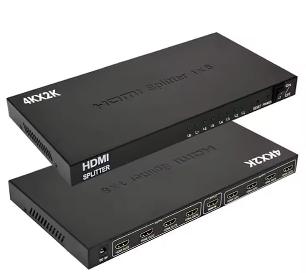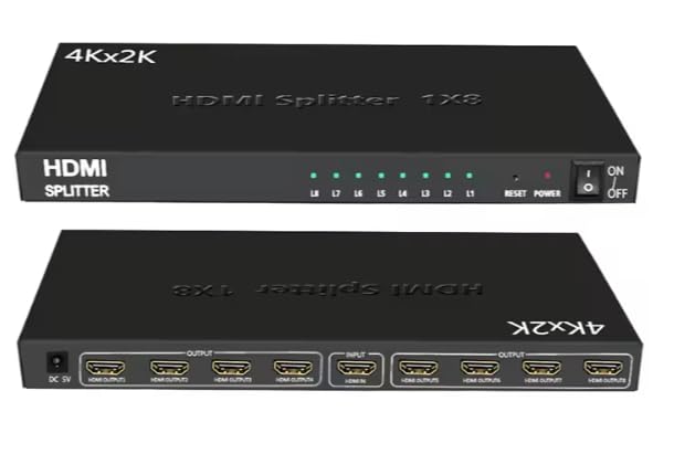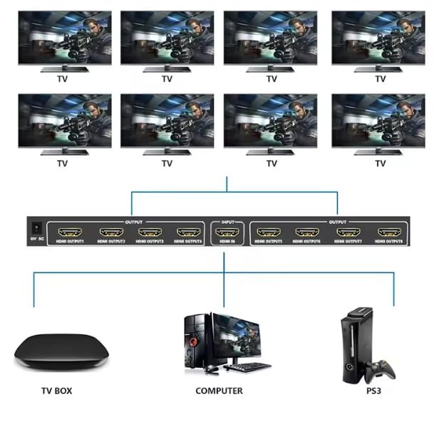 - HDMI Splitter 1 in 8 Port Out of Full HD Support 1080 P 4k 1x8 HDMI Splitter 4K 8 Port HDMI Splitter 1 to 8 Real 4K x 2K Splitter HDMI 1 I HDMI Splitter HDMI Splitter ver 14(Black)with adapter