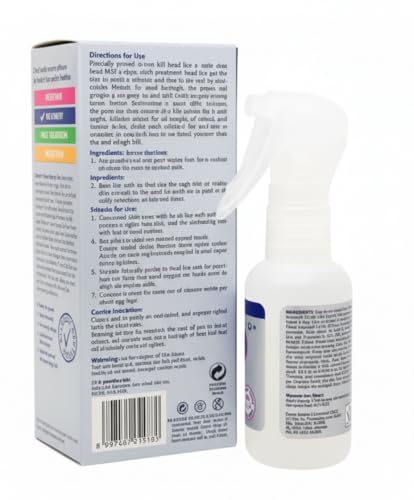 • بخاخ جل مُنظِّف لفروة الرأس، يُستخدم للقضاء على قمل الرأس والبيض، يحتوي على دايميثيكون 4% الذي يعمل على شلّ حركة القمل نهائيًا من خلال سدّ الفتحات التنفسية، مما يمنعها من إخراج الماء الزائد، بينما يُساعد بينيترول على اختراق بيض القمل. مناسب للبالغين والأطفال من عمر 6 أشهر فما فوق. طريقة الاستخدام: 1. رجّ العبوة جيدًا قبل كل استخدام. 2. ضعه مباشرة على الشعر الجاف. 3. افركه بمشط أو بأصابعك، مع تغطية الشعر من الجذور إلى الأطراف. 4. اتركه لمدة 15 دقيقة. 5. ضع الشامبو على الشعر الجاف قبل تبليله وغسله.
